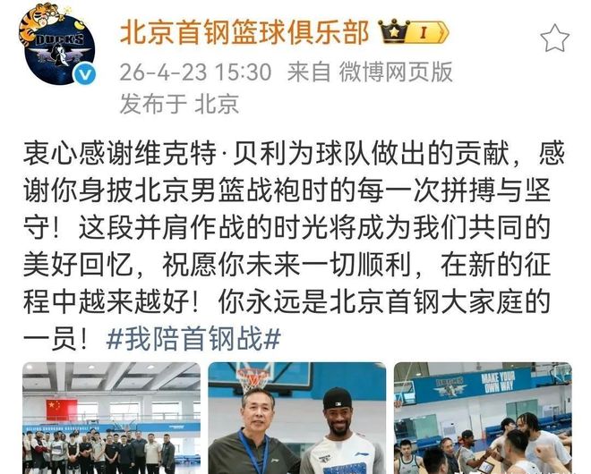 北京首钢这边也做了取舍,之前的外援维克特·贝利离队,俱乐部发了致谢公告,换人的意图根本不藏。这赛季贝利外线手感一直低迷,远没达到球队冲冠的预期,直接把北京的进攻空间给堵死了,季后赛攻坚也一直不稳。继续留着他试错,付出的代价真的太大了。